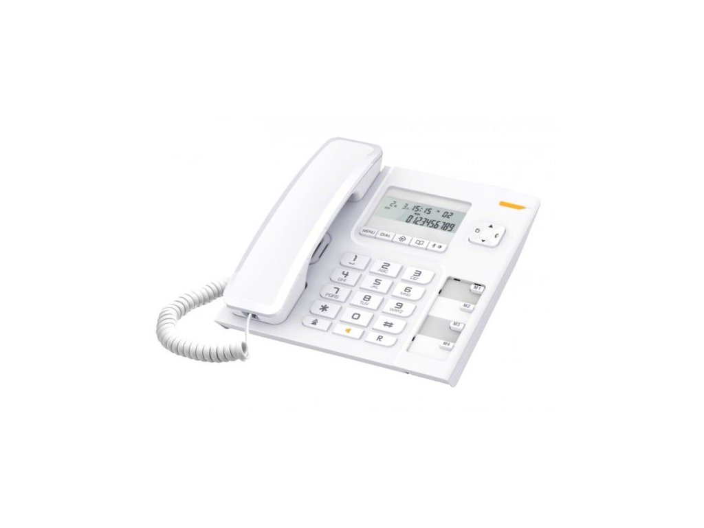 * stolní telefon s numerickým displejem a hlasitým odposlechem * napájení z telefonní linky: nepotřebuje baterie * funkce hlasitého odposlechu pro sdílení konverzace * 4 tlačítka přímé volby a 10 dvoudotykových pamětí pro snadnou volbu vašich oblíbených kontaktů * tlačítko pro automatickou opakovanou volbu posledních volaných čísel * detailní zobrazení zmeškaných volání * displej (1 řádka 7 segmentů, 1 řádka ikony) * zobrazení času/datumu * zobrazení doby trvání hovoru * nastavení hlasitosti vyzvánění (3 - nízká; střední; vysoká) * hlasitý odposlech * nastavení hlasitosti odposlechu (8 úrovní) * 4 paměti přímé volby * 10 dvoudotykových pamětí * indikátor příchozího čekajícího hovoru * identifikace volajícího (Typ 1) * paměť na 10 čísel příchozích hovorů * opakovaná volba posledních 5 volených čísel * tlačítko Flash * předvolba * tlačítko vypnutí mikrofonu * možnost montáže na stěnu * tónová i pulzní volba * čas FLASH : 100; 300; 600 ms * režim indikace příchozího hovoru FSK a DTMF * přípojná šňůra RJ 11 * napájení: z telefonní linky, nepotřebuje baterie * barva bílá
