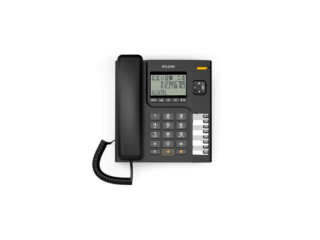 * stolní telefon s velkým maticovým (bodovým) displejem a hlasitým odposlechem * extra velký maticový (bodový) displej pro visuální komfort * výhodné napájení z telefonní linky, nejsou třeba žádné baterie. * funkce hlasitého odposlechu pro sdílení konverzace * 8 tlačítek přímé volby a 10 dvoudotykových pamětí pro snadnou volbu vašich oblíbených kontaktů * tlačítko pro automatickou opakovanou volbu posledních volaných čísel * detailní zobrazení zmeškaných volání * velký displej (1 řádka 7 segmentů, 1 řádka bodový, 1 řádka ikony) * zobrazení času/datumu * zobrazení doby trvání hovoru * nastavení hlasitosti vyzvánění (3 - nízká; střední; vysoká) * hlasitý odposlech * nastavení hlasitosti odposlechu (3 úrovně) * 8 pamětí přímé volby * 10 dvoudotykových pamětí * indikátor příchozího čekajícího hovoru * identifikace volajícího (Typ 1 a 2) * paměť na 30 čísel příchozích hovorů * opakovaná volba posledních 5 volených čísel * tlačítko Flash ® * předvolba * tlačítko vypnutí mikrofonu * možnost montáže na stěnu * tónová i pulzní volba * délka FLASH: 100; 300; 600 ms * formát indikace příchozího hovoru (CLIP) FSK a DTMF * přípojná šňůra RJ 11 * rozměry: 193 x 184 x 72 mm